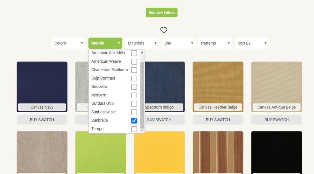 Step 2: Select from the filters Brand > Sunbrella