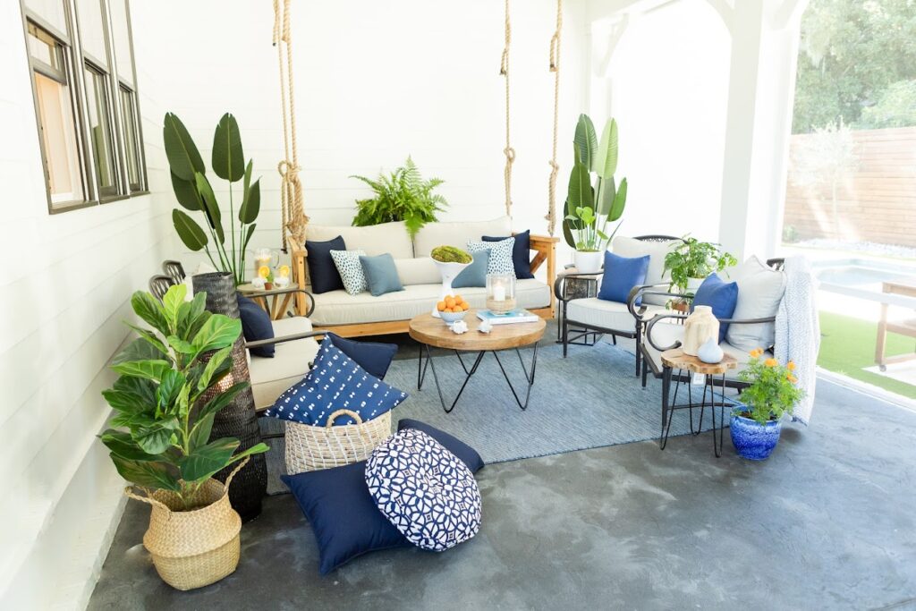 Enhance the ambiance with garden furniture featuring custom cushions in spring colors from CushionPros.com.